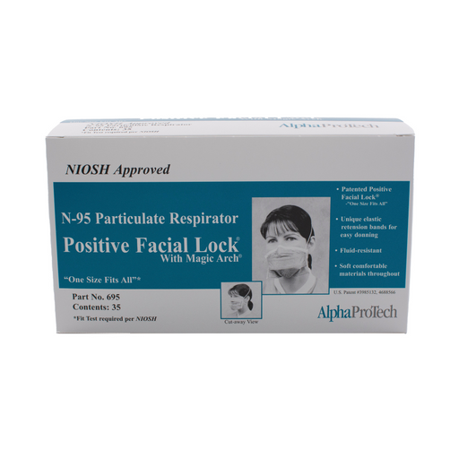Alpha Protech 695No reviewsManufacturer: Alpha Pro Tech Part No. 695 NIOSH Approved These masks are class II medical devices, and are intended for use by operating room pe...